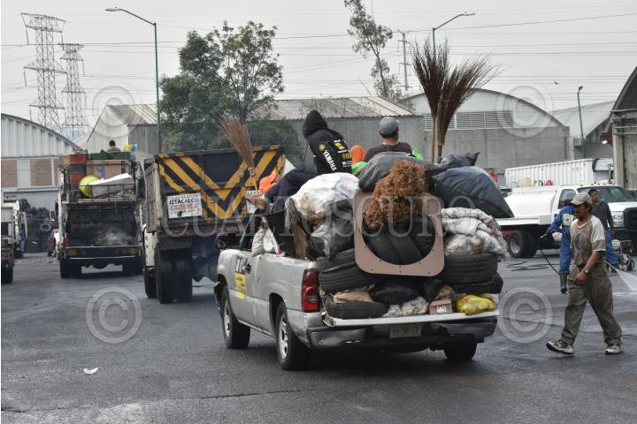 CIUDAD DE MÉXICO, 17MARZO2016.- Decenas de camiones de basura de la CDMX permanecen estacionados varias horas en los diferentes centros de transferencia, en donde reciclan la basura producida por los capitalinos, el retraso se debe a que decenas de toneladas de residuos ya no pueden irse a depositar a los rellenos sanitarios del Estado de México, ante la negativa por parte del gobernador Eruviel Ávila, quien toma la medida luego de que el Jefe de Gobierno Miguel Ángel Mancera, señalará que el problema de la contaminación ambiental es un problema conjunto y las entidades que conforman la gran megalópolis no toman las medidas necesarias para mitigar la polución. FOTO: ARMANDO MONROY /CUARTOSCURO.COM