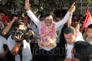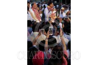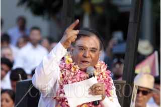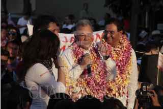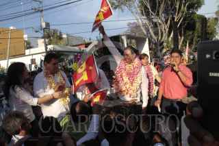 OAXACA, OAXACA., 17MARZO2016.- Ángel Benjamín Robles Montoya presentó este jueves su solicitud de registro ante el Instituto Estatal Electoral y de Participación Ciudadana de Oaxaca (IEEPCO) como candidato a la gubernatura por el Partido del Trabajo (PT), el senador con licencia estuvo acompañado del dirigente nacional de ese instituto, Alberto Anaya. El ex militante de los partidos Revolucionario Institucional, de la Revolución Democrática y Movimiento Ciudadano puntualizó que será el el próximo gobernador y que cuando llegue al gobierno estatal ejercerá acciones en beneficio de los más pobres. FOTO: ARTURO PÉREZ ALFONSO /CUARTOSCURO.COM
