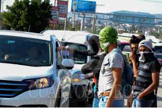 CHILPANCINGO, GUERRERO, 17MARZO2016.- Estudiantes de la normal Raúl Isidro Burgos de Aytozinapa bloquearon el Parador del Marqués, donde tomaron tres autobuses del servicio público y repartieron volantes a los automovilistas, para exigir más matrículas para alumnos de nuevo ingreso y la presentación con vida de los 43 normalistas desaparecidos desde el 2014. FOTO: JOSÉ I. HERNÁNDEZ / CUARTOSCURO.COM