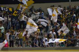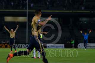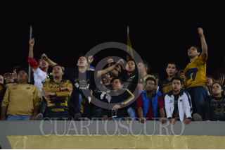 CIUDAD DE MÉXICO, 17MARZO2016.- Tras haber perdido en el partido de ida dentro de la fase de grupos de la Copa Libertadores, los Pumas de la Universidad Nacional Autónoma de México lograron remontar en casa frente al Deportivo Táchira finalizando con marcador de 4-1. Tras varias jugadas peligrosas y de aviso para el guardameta David Contreras, Gerardo Alcoba, número tres, abrió el marcador para los locales; Hibert Ruíz, número 17, empato el marcador global para los auriazules, al 61 Ismael Sosa, número 18, puso la ventaja del 3 por cero y aunque los venezolanos lograron penetrar la meta de Palacios, al minuto 85 de nueva cuenta Sosa selló el triunfo de los felinos. Aspectos de la afición auriazul. FOTO: GALO CAÑAS /CUARTOSCURO.COM
