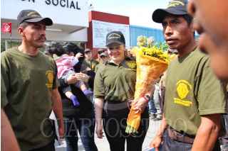 CIUDAD DE MÉXICO, 18MARZO2016.- Nestora Salgado, comandante de la Policía Comunitaria de Olinalá, Guerrero, salió libre del Penal de Tepepan después de haber sido encarcelada por dos años. Fue recibida por miembros de la Policía Comunitaria quienes le rindieron el saludo de honor uno por uno. FOTO: MARÍA JOSÉ MARTÍNEZ /CUARTOSCURO.COM