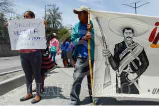CHILPANCINGO, GUERRERO, 18MARZO2016.- Integrantes de la Unión Campesinos Emiliano Zapata Independiente (UCEZI), que encabeza Sofía Mendoza Martínez, viuda del líder asesinado Arturo Hernández Cardenas, marcharon sobre la Autopista del Sol con dirección al Palacio de Gobierno para exigir fertilizante para cuarenta familias. FOTO: JOSÉ I. HERNÁNDEZ / CUARTOSCURO.COM