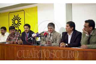 Coordinadores parlamentarios del PRD ofrecieron una rueda de prensa en el CEN del PRD, en ella trataron los principales inconvenientes que tiene para realizar su trabajo. Martí Batres y Ukib Espadas, en la gráfica. FOTO: Victoria Valtierra/CUARTOSCURO.COM
