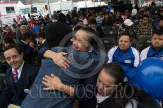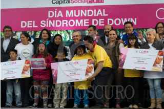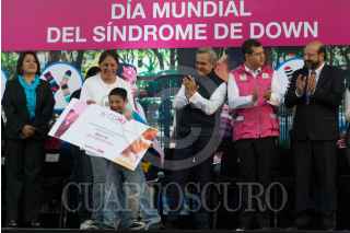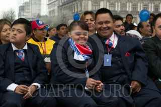 CIUDAD DE MÉXICO, 21MARZO2016.- Niños con Síndrome de Down conmemoraron el día mundial de este padecimiento genético en la explanada del Zócalo. Con la presencia del Jefe de Gobierno Miguel Ángel Mancera quien entregó tarjetas de becas de lectoescrituras y anunció que a partir del mes de julio de este año, el Hospital Pediátrico de San Juan de Aragón contará con atención especializada para estos infantes. FOTO: MOISÉS PABLO /CUARTOSCURO.COM