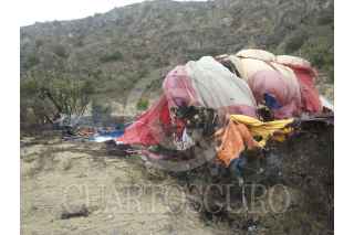 CIUDAD DE MÉXICO, 21MARZO2016.- Dos personas calcinadas y dos más con quemaduras de segundo y tercer grados, dejó el incendio de un globo aerostático en la comunidad de Yolo, municipio de Acatlán, Hidalgo. De acuerdo con el subsecretario de Protección Civil de Hidalgo, Miguel García Conde, el siniestro ocurrió entre las 8:00 y 9:00 horas de este lunes. La nave transportaba a 12 turistas cuando por causas que no se han determinado, el globo comenzó a prenderse. Ocho de los viajeros saltaron de la canastilla y dos más murieron calcinados. Respecto a los dos lesionados con quemaduras de segundo y tercer grado, fueron trasladados a hospitales en Pachuca, para recibir atención médica. FOTO: CUARTOSCURO.COM