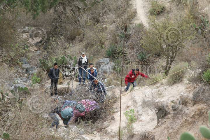 AGUA BLANCA, HIDALGO, 21MARZO2016.- Policias y personal del municipio sacan los restos de un globo aerostático que se incendio volando y se desplomó en la barranca del Yolo ubicado en los límites del municipio de Acatlán y Agua Blanca, dicho accidente dejo como saldo dos personas sin vida y alrededor de ocho personas lesionadas con quemaduras de primer grado. FOTO: SAÚL LÓPEZ /CUARTOSCURO.COM