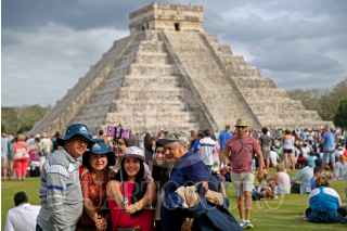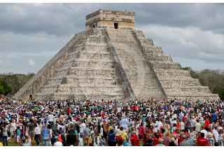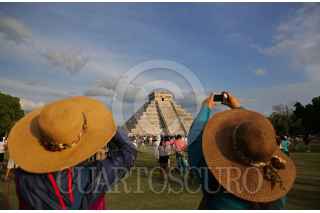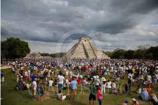 CHICHEN ITZÁ, YUCATAN, 21MARZO2016.- Unas 15 mil personas se dieron cita en la zona arqueológica de Chichen Itzá para presenciar el fenómeno de luz y sombra del equinoccio de primavera el cual se observó muy poco debido a los nublados que trajo consigo el frente frío número 49. FOTO: FRANCISCO BALDERAS / CUARTOSCURO.COM