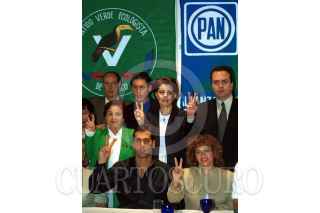 El PVEM presentó a sus nuevos legisladores para el próximo período legislativo entre los que destacan Jorge Emilio González, virtual coordinador de la fracción verde en el senado y Gustavo Diaz Ordaz, primero a la derecha, nieto del expresidente. FOTO: Germán Romero/cuartoscuro.com