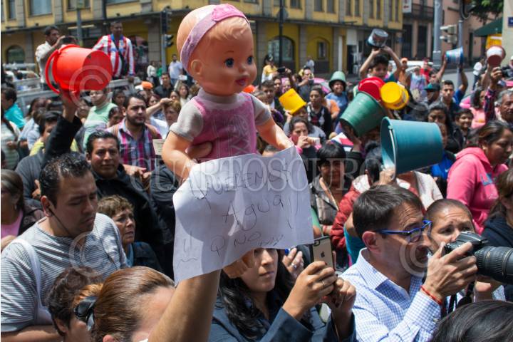 CIUDAD DE MÉXICO, 22MARZO2016.- Habitantes de la delegación Iztapalapa exigieron agua potable para sus colonias afuera de la Asamblea Legislativa del DF, en el marco del Día Mundial del Agua, los inconformes llevaron cubetas sin el vital líquido, por que es como se encuentran sus casas, denunciaron. Las diputadas Wendy González Urrutia y Janet Hernández Sotelo marcharon con los inconformes del recinto legislativo hacia el Zócalo en apoyo a su demanda. FOTO: MOISÉS PABLO /CUARTOSCURO.COM