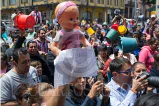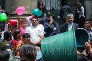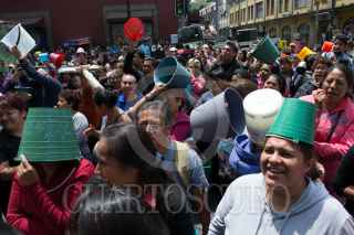CIUDAD DE MÉXICO, 22MARZO2016.- Habitantes de la delegación Iztapalapa exigieron agua potable para sus colonias afuera de la Asamblea Legislativa del DF, en el marco del Día Mundial del Agua, los inconformes llevaron cubetas sin el vital líquido, por que es como se encuentran sus casas, denunciaron. Las diputadas Wendy González Urrutia y Janet Hernández Sotelo marcharon con los inconformes del recinto legislativo hacia el Zócalo en apoyo a su demanda. FOTO: MOISÉS PABLO /CUARTOSCURO.COM