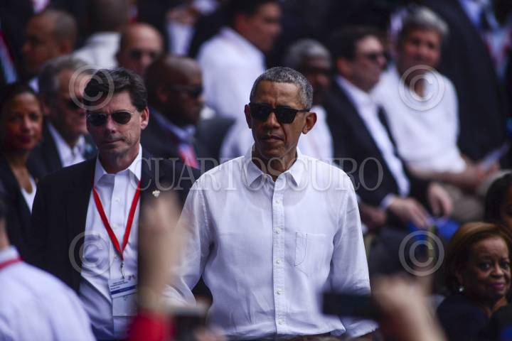 LA HABANA, CUBA, 22MARZO2016.- Barack Obama, presidente de los Estados Unidos y Raúl Castro, presidente de Cuba, durante el partido de béisbol entre los Rays Tampabay y la selección de Cuba, como parte de las actividades para restablecer las actividades diplomáticas entre la isla y los norteamericanos. FOTO: ADOLFO VLADIMIR /CUARTOSCURO.COM