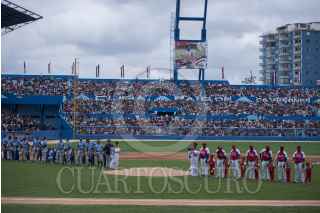 LA HABANA, CUBA, 22MARZO2016.- La selección de béisbol de Cuba se enfrentó a las Rays de Tampa Bay, en el Estadio Latinoamericano, como parte de las actividades de restablecimiento de las relaciones diplomáticas entre los Estados Unidos y la isla caribeña y al cual asistió Barack Obama y Raúl Castro, presidentes de cada país, respectivamente. FOTO: ADOLFO VLADIMIR /CUARTOSCURO.COM