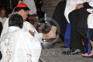 CIUDAD DE MÉXICO, 24MARZO2016.- El Cardenal Norberto Rivera Carrera encabezó el lavatorio de pies del Jueves Santo en la Catedral Metropolitana. FOTO: ANTONIO CRUZ /CUARTOSCURO.COM