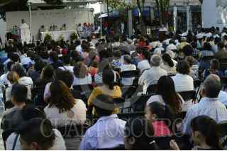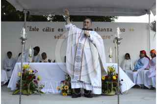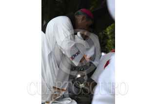 CHILPANCINGO, GUERRERO, 24MARZO2016.- Salvador Rangel Mendoza, Obispo de la Diocesis de Chilpancingo-Chilapa, encabezó la celebración de lavatorio de pies en el marco de la celebraciones religiosas de Semana Santa, la liturgia se realizó frente a la catedral de "La Asunción de María", en el zócalo. FOTO: JOSÉ I. HERNÁNDEZ / CUARTOSCURO.COM