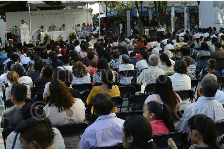 CHILPANCINGO, GUERRERO, 24MARZO2016.- Salvador Rangel Mendoza, Obispo de la Diocesis de Chilpancingo-Chilapa, encabezó la celebración de lavatorio de pies en el marco de la celebraciones religiosas de Semana Santa, la liturgia se realizó frente a la catedral de "La Asunción de María", en el zócalo. FOTO: JOSÉ I. HERNÁNDEZ / CUARTOSCURO.COM