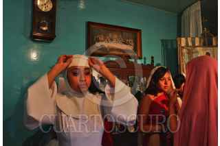 CIUDAD DE MÉXICO, 25MARZO2016.- Esta mañana los actores que forman parte el elenco de la 173 Representación de la Pasión de Cristo se alistaron en la Casa de los Ensayos, desde donde saldrán con rumbo a la explanada delegacional. FOTO: MARÍA JOSÉ MARTÍNEZ /CUARTOSCURO.COM