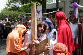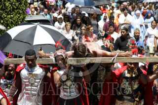 CIUDAD DE MÉXICO,25MARZO2016. Desde hace seis años colonos de las Lomas de Chapultepec escenifican el viacrucis y pasión de cristo en las calles Sierra Nevada y concluyen en las inmediaciones de la Parroquia de Santa, Teresita del Niño, Jesús de dicha colonia. FOTO: ANTONIO CRUZ /CUARTOSCURO.COM