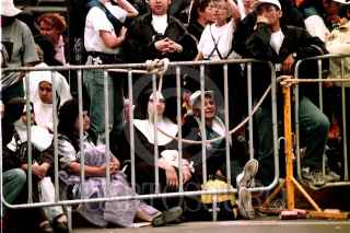 En medio de porras, vivas y canciones, fieles católicos y religiosas esperaron por varias horas la llegada del Papa Juan Pablo II a la Nunciatura Apostólica. FOTO: Susana Navarrete/CUARTOSCURO.COM
