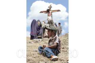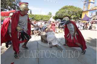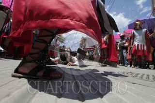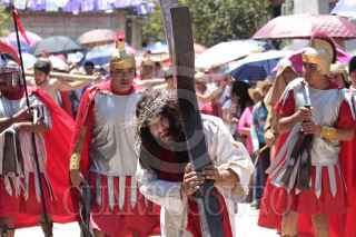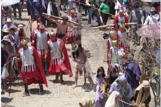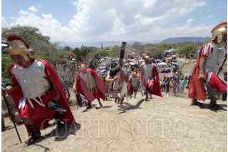ÁNIMAS TRUJANO, OAXACA, 25MARZO2016.- Este medio día se llevó a cabo en los distintas localidades del estado de Oaxaca la representación de la "Pasión y muerte de Jesucristo" de acuerdo con la religión católica. Uno de estos sitios es el municipio de Ánimas Trujano, conurbado a la capital del estado en el que un grupo de jóvenes realizó la representación en la que Jesús de Nazareth es condenado a muerte y crucificado en el monte el Calvario. FOTO: ARTURO PÉREZ ALFONSO /CUARTOSCURO.COM