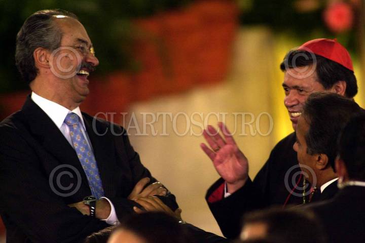 Lino Korrodi, ex coordinador de finanzas de "Amigos de Fox", y Carlos Medina Plascencia, diputado federal panista, también acudieron al hangar presidencial para dar la bienvenida al Papa Juan Pablo II. FOTO: Pedro Mera/CUARTOSCURO.COM