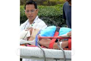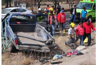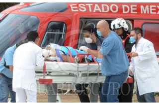 ACOLMAN, ESTADO DE MÉXICO, 26MARZO 2016.- Dos personas perdieron la vida y tres más resultaron gravemente lesionadas al registrarse una volcadura en el kilómetro 22 de la autopista México Pirámides, con ayuda de Relámpagos se trasladó vía aérea a ua persona al hospital Magdalena de las Salinas. FOTO: ARMANDO MONROY/CUARTOSCURO.COM