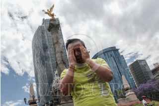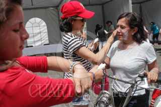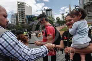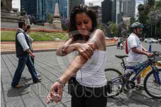 cIUDAD DE MEXICO, 27MARZO2016.- La Secretaría de Salud local promovió el uso de protector solar para evitar enfermedades en la piel, durante una ceremonia en el Ángel de la Independencia, en donde regaló cremas a las personas que disfrutaban del paseo ciclista sobre Reforma. FOTO: ISAAC ESQUIVEL /CUARTOSCURO.COM