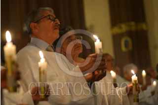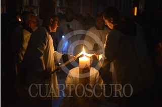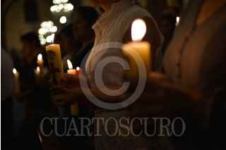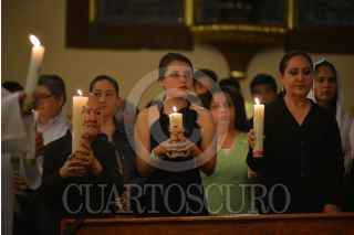 XALAPA, VERACRUZ, 27MARZO2016.- Misa de la Solemne Vigilia Pascual, donde se celebra la resurrección de Jesús así como el recibimiento y consagración del fuego nuevo; decenas de fieles acudieron a la catedral xalapeña a escuchar la palabra y recibir la bendición, la misa fue presidida por el arzobispo Hipólito Reyes Larios. FOTO: ALBERTO ROA /CUARTOSCURO.COM