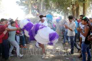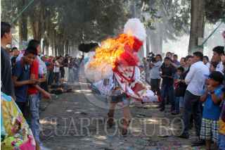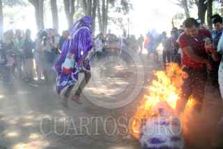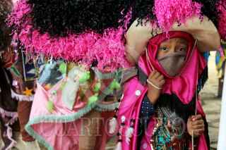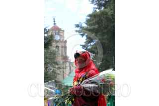 TETELA DEL MONTE, MORELOS, 27MARZO2016.- Alrededor de 1000 personas portaron los tradicionales trajes de sayones y sombreros, hechos de papel, para la celebración de la resurrección de Jesucristo durante los festejos de clausura de la Semana Santa Los creyentes salieron del Panteón local hasta llegar al patio de la Iglesia del pueblo, donde se llevó a cabo la quema de sombreros. FOTO: PATRICIA MORALES /CUARTOSCURO.COM