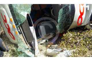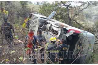 IXTAPALUCA, ESTADO DE MÉXICO, 28MARZO2016.- Un camión de pasajeros de la empresa Cristóbal Colon se desbarranco por exceso de velocidad en el kilómetro 41 de la autopista federal México-Puebla, con un saldo de un muerto y 15 lesionados. FOTO: ARMANDO MONROY /CUARTOSCURO.COM