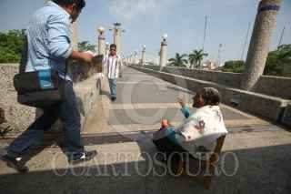 VILLAHERMOSA, TABASCO, 28MARZO2016.- Debido al abandono de familiares y al no tener dinero para adquirir comida, esta mujer entre los noventa años de edad pide limosna sobre el puente peatonal Manuel Perez Merino. FOTO: MARCO POLO GUZMÁN HERNÁNDEZ /CUARTOSCURO.COM