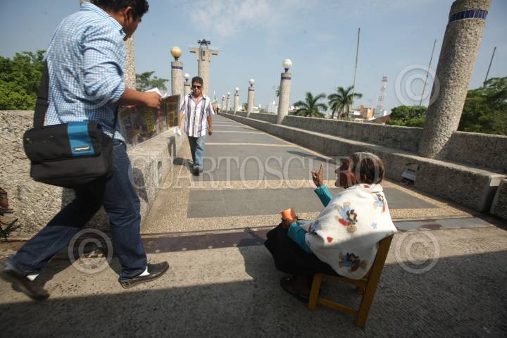VILLAHERMOSA, TABASCO, 28MARZO2016.- Debido al abandono de familiares y al no tener dinero para adquirir comida, esta mujer entre los noventa años de edad pide limosna sobre el puente peatonal Manuel Perez Merino. FOTO: MARCO POLO GUZMÁN HERNÁNDEZ /CUARTOSCURO.COM