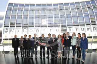 CIUDAD DE MÉXICO, 29MARZO2016.- Senadores del PRD colocaron mega mantas con la leyenda #MXCONTRATRUMP en el Senado de la República. FOTO: CUARTOSCURO.COM