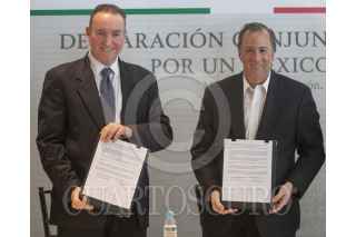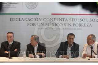 MONTERREY, NUEVO LEÓN, 29MARZO2016.- El secretario de Desarrollo Social, José Antonio Meade Kuribreña, y el director general de Soriana, Ricardo Martín Bringas, realizan la firma de la Declaración Conjunta SORIANA-SEDESOL por un México Incluyente. FOTO: GABRIELA PÉREZ MONTIEL/ CUARTOSCURO.COM