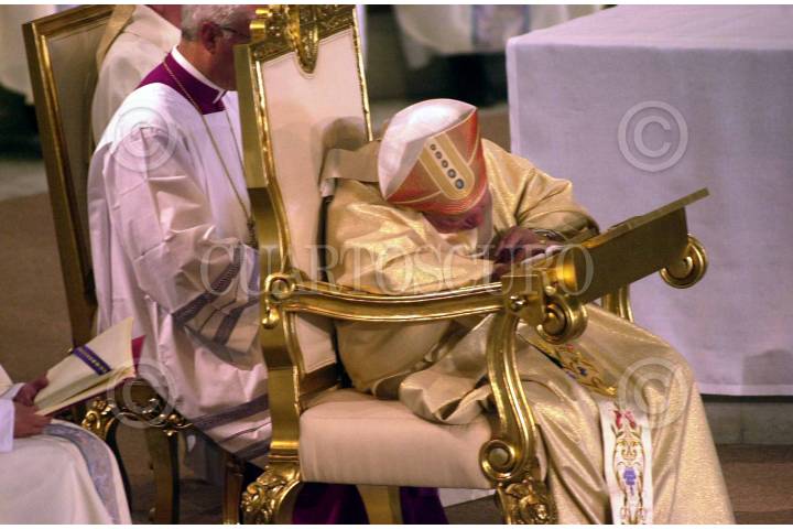 Arturo Montiel, gobernador del Estado de México, y su esposa llevaron un presente a Juan Pablo II, durante la misa que el sumo pontífice ofició esta mañana. FOTO: Pedro Mera/CUARTOSCURO.COM