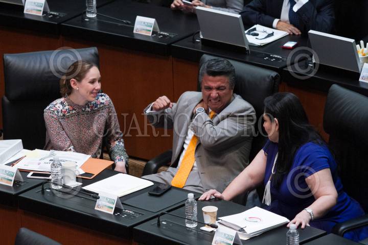CIUDAD DE MÉXICO, 29MARZO2016.- Los priistas Carlos Romero Deschamps y Emilio Gamboa Patrón, durante la sesión en la Cámara de Senadores. FOTO: MOISÉS PABLO /CUARTOSCURO.COM