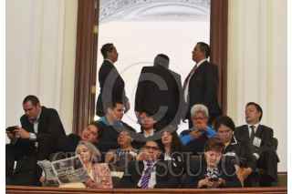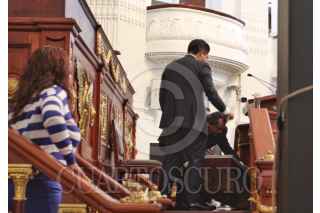 CIUDAD DE MÉXICO, 30MARZO2016.- En la imagen, parte del mueble del estrado central que cayó durante la sesión. Perla Gómez, ombudsman capitalina, acudió al pleno de la ALDF para rendir comparecencia en torno al tema de derechos humanos durante su administración. FOTO: MARÍA JOSÉ MARTÍNEZ /CUARTOSCURO.COM