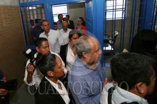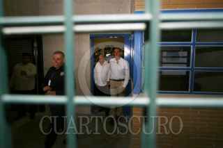 SAN FRANCISCO TANIVET, OAXACA, 30MARZO2016.- El comisionado Nacional de Seguridad, Renato Sales Heredia junto con el gobernador del estado inauguraron el penal varonil de San Francisco Tanivet el cual tendrá cupo para mil 500 reclusos el cual tuvo un costo superior a los mil millones de pesos y el cual llevó construir 3 años y medio. Luego de la develación de la placa se inició un recorrido con representantes de los medios de comunicación, sin embargo este fue cancelado debido a que se le tomaron fotografías a Sales Heredia y a Cué Monteagudo a través de las rejas de los pasillos por los que caminaban, esta decisión la tomó el ejecutivo estatal justificando que hay fotógrafos que solo buscan "molestar". FOTO: ARTURO PÉREZ ALFONSO /CUARTOSCURO.COM