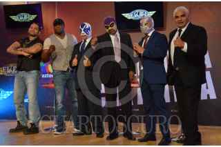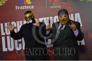 CIUDAD DE MÉXICO, 30MARZO2016.- Rodrigo Fernández, director de Azteca siete y trece, en compañía de “El Fantasma”, presidente del Comité de Lucha Libre y Ernesto Santillan, presidente de la Liga Elite, presentaron el nuevo proyecto denominado “Lucha Azteca”, el cual pretende ser un torneo anual para designar al mejor luchador de esta Liga. Al termino de la conferencia se realizo una alfombra roja en donde estuvieron presentes luchadores y actores de la televisora. FOTO: GALO CAÑAS /CUARTOSCURO.COM