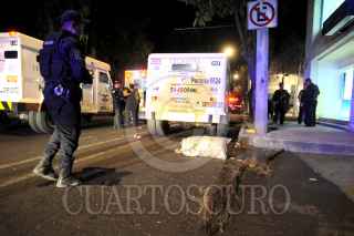 CIUDAD DE MÉXICO., 31MARZO2016.- Dos custodios de la empresa Tecnoval, resultaron con lesiones por arma de fuego, luego, de que delincuentes disfrazados de barrenderos intentaron despojarlos del efectivo con el que reabastecían cajeros automáticos de un banco, ubicado el Plutarco E. Calles y Republicas colonia Portales Oriente. Los delincuentes, lograron huir del lugar. Los lesionados fueron trasladados al Hospital Trauma Sur en donde se reportaron como estables. FOTO: LUIS CARBAYO /CUARTOSCURO.COM