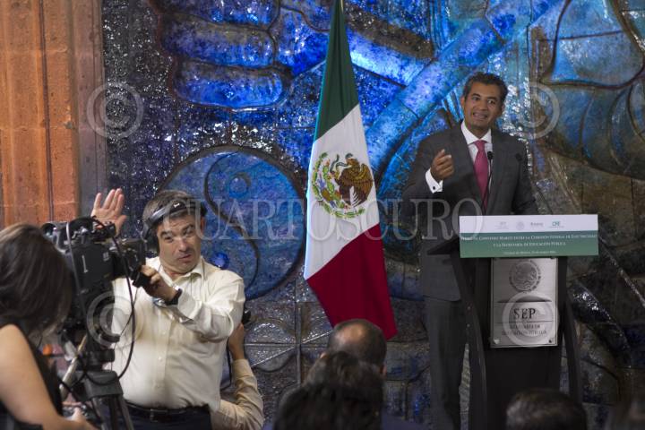 CIUDAD DE MÉXICO, 31MARZO2016.- Enrique Ochoa Reza, director del Comisión Federal de Electricidad, y Aurelio Nuño, secretario de Educación Pública, encabezaron la firma entre la CFE-Inifed en la sede de la SEP. FOTO: MOISÉS PABLO /CUARTOSCURO.COM
