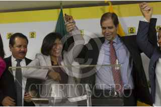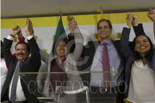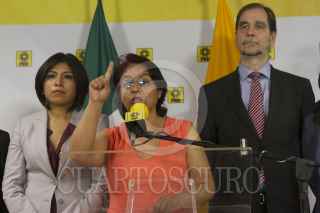 CIUDAD DE MÉXICO, 31MARZO2016.- Luis Sánchez, senador del PRD, Roxana Luna, candidata a la gubernatura del Partido de la Revolución Democrática (PRD), Agustín Basave, dirigente nacional del perredista, y Beatriz Mójica, secretaria general del partido, durante la conferencia de prensa en la sede nacional del solazteca para hablar del próximo proceso electoral en el estado. FOTO: MOISÉS PABLO /CUARTOSCURO.COM