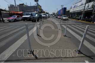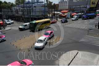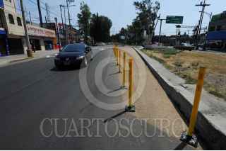 CIUDAD DE MÉXICO, 31MARZO2016.- En diferentes vialidades autoridades de la Ciudad de México, colocaron postes según ellos para evitar que autos se estacionen o para mejorar la circulación, sin embargo esto en la realidad es diferente ya que lo único que provocan es más caos vehicular. FOTO: ARMANDO MONROY /CUARTOSCURO.COM