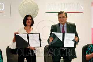 CIUDAD DE MÉXICO, 31MARZO2016.- La Presidenta del Instituto Nacional de las Mujeres (INMUJERES), Lorena Cruz Sánchez, y el Presidente de la Comisión Nacional de los Derechos Humanos (CNDH), Luis Raúl González Pérez, firmaron un Convenio de Colaboración con el objetivo de fortalecer los mecanismos institucionales de información para la observancia, evaluación, seguimiento y monitoreo de la Política Nacional en Materia de Igualdad entre Mujeres y Hombres; así como para coordinar acciones que fomenten la igualdad sustantiva. FOTO: CUARTOSCURO.COM