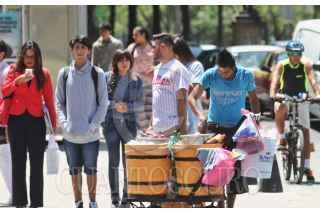 CIUDAD DE MÉXICO, 02ABRIL2016.- Temperaturas en extremo calurosas modelan la atmósfera de la capital mientras los transeúntes se hidratan o buscan refrescarse de cualquier manera. FOTO: MARÍA JOSÉ MARTÍNEZ /CUARTOSCURO.COM
