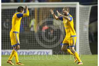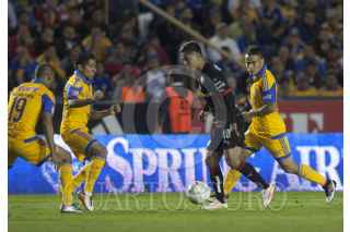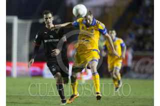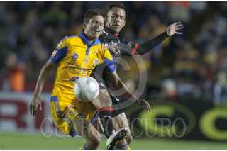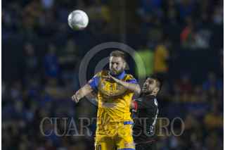 MONTERREY, NUEVO LEÓN, 02ABRIL2016.- André-Pierre Gignac del equipo de los Tigres de la UANL se disputa el balón con Rafa Márquez del equipo de los Zorros del Atlas, en el estadio Universitario, partido correspondiente a la jornada 12 de la Liga MX, Clausura 2016. Marcador Final: Tigres 2 - Atlas 2. FOTO: GABRIELA PÉREZ MONTIEL / CUARTOSCURO.COM