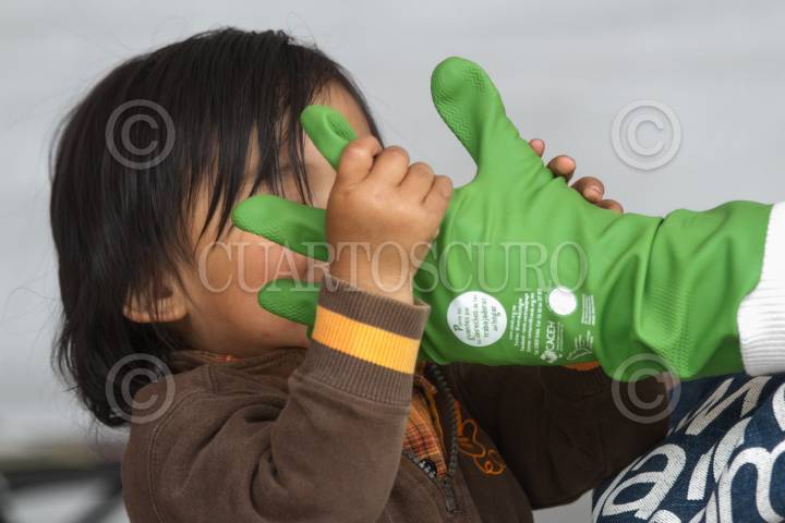 CIUDAD DE MÉXICO, 03ABRIL2016.- Asistentes a la conmemoración Día Internacional de Trabajadoras del Hogar, en la Alameda Central, en donde reiteraron a la sociedad respeto hacia su personas y la actividad que ejercen. Las mujeres portaron un guante verde con la leyenda "Ponte los guantes por los derechos de las trabajadoras del hogar". FOTO: MOISÉS PABLO /CUARTOSCURO.COM