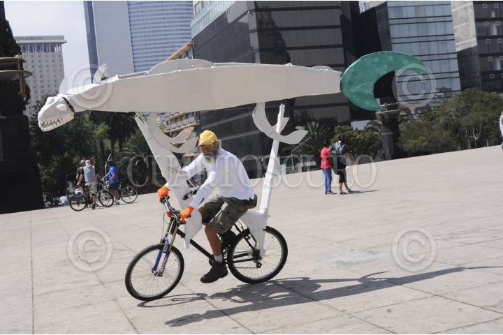 CIUDAD DE MÉXICO, 03ABRIL2016.- Domingo bicicletero; un grupo de jóvenes exhibe sus bicis cromadas en la explanada del monumento a la Revolución. FOTO: DIEGO SIMÓN SÁNCHEZ /CUARTOSCURO.COM