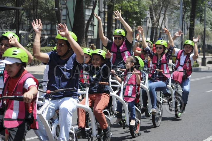 CIUDAD DE MÉXICO, 03ABRIL2016.- Miles de personas participan en el paseo ciclista sobre la avenida Paseo de la Reforma, el cual tiene un horario de ocho de la mañana hasta las dos de la tarde. FOTO: DIEGO SIMÓN SÁNCHEZ /CUARTOSCURO.COM