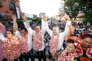 JUCHITÁN, OAXACA, 03ABRIL2016.- Alejandro Murat Hinojosa, candidato a la gubernatura del estado PRI-Panal-PVEM, y Manlio Fabio Beltrones, dirigente nacional del Partido Revolucionario Institucional, durante un evento proselitista en el marco de inicio de las campañas en el estado. FOTO: CUARTOSCURO.COM