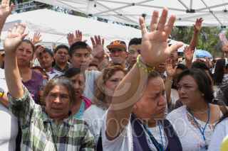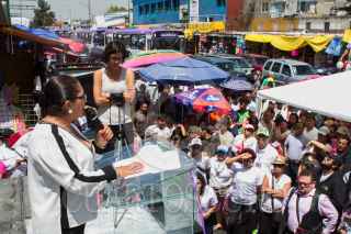 CIUDAD DE MÉXICO, 04ABRIL2016.- Encabezados por la líder de comerciantes María Rosete habitantes del barrio de Tepito llevaron a cabo una jornada por la paz, esto ante la ola de homicidios violentos que se vive en esta colonia, el encuentro se realizó en la esquina de la calle de Argentina y Eje 1 Norte. FOTO: MOISÉS PABLO /CUARTOSCURO.COM